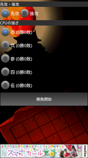 寝返り忍者では、二人での対人対戦が可能なほか、コンピューター対戦の難易度が5段階まで設定でき先攻、後攻の変更も可能です。コンピューターに勝利すると背景や駒の隠しグラフィックが手に入りますので、グラフィック集めを行うために腕を磨きたくなるかもしれません。相手をいかに挟んで寝返りをうまく利用出来るか、というのが重要で、斜めで挟むことをうまく駆使するのがレベルアップのポイントになるでしょう。