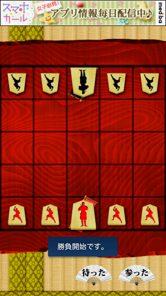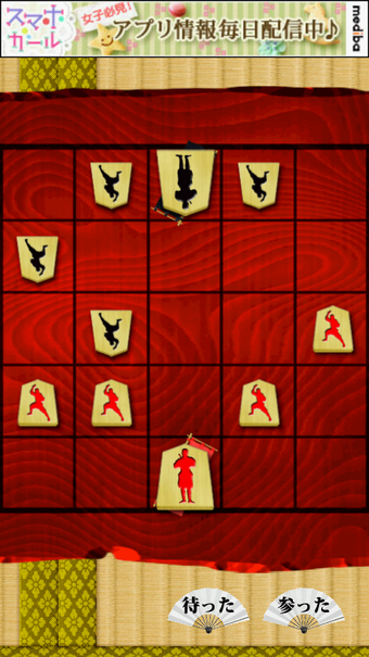 寝返り忍者(Negaeri Ninja)は、リバーシ(オセロ*)、挟み将棋、チェスの要素を組み合わせ、忍者同士が戦う無料のAndroid用新感覚ボードゲームです。5×5の盤面で5人の忍者たちを操りますが、相手を挟むと寝返ることがこのゲームのポイントです。ルールは単純で子どもから大人まで楽しめますが、真剣に考えると非常に奥が深くはまり込んでしまうことでしょう。コンピューター対戦のほか対人対戦も可能ですので、“寝返り”を駆使して友人や家族と対戦を楽しんでみてはいかがでしょうか。